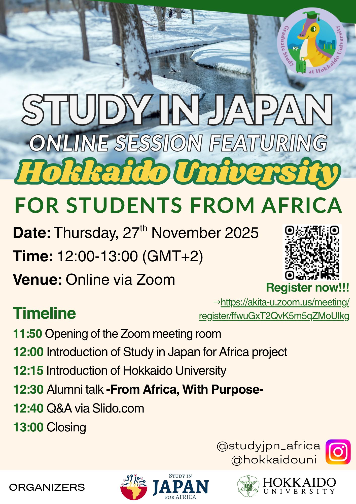 【オンライン】STUDY in JAPAN: Online Session Featuring Hokkaido University for Students from Africa