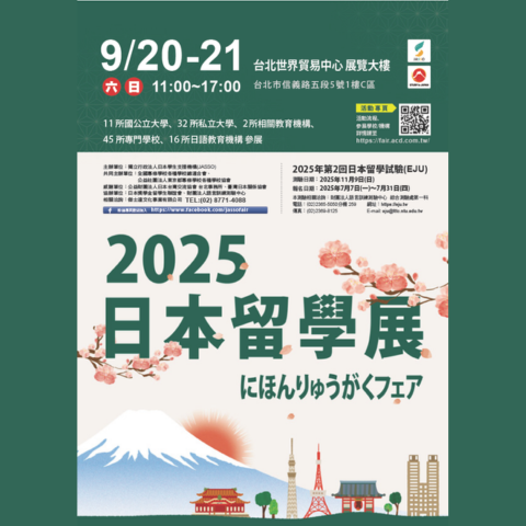 2025年9月20日~21日に台湾・台北で開催される留学フェアに参加します。ぜひお越しください。