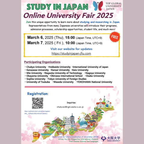 日本での勉強や研究について詳しく知ることができる大阪大学主催のオンラインイベント。